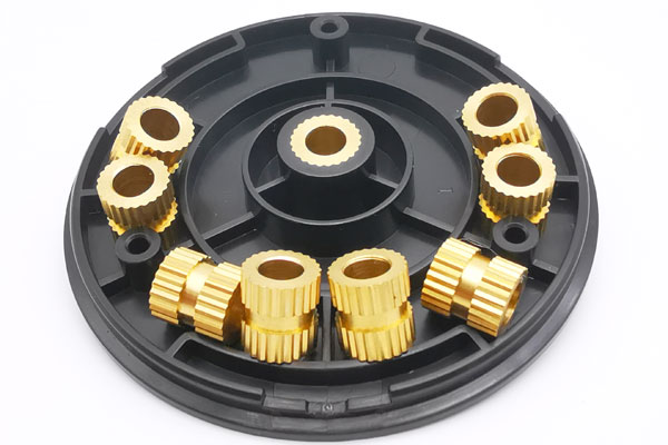 This is a four cavities brass nut inserted molding. We put the brass nuts into the mold and then make injection molding.The nuts are also available in wkplastics at a fair price.
